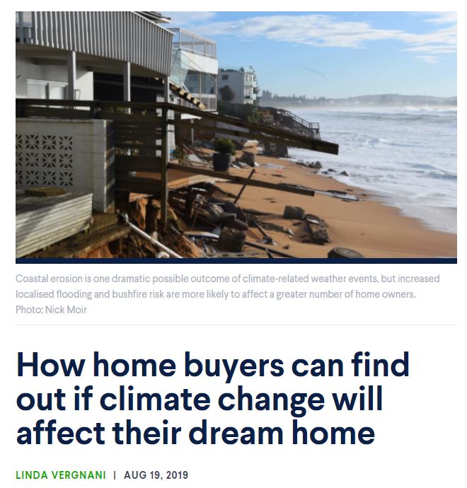 Climate change may lessen or wipe out the value of the home you are interested in buying. The story describes a range of online tools that home buyers can use to assess the climate risks for a particular property, including sea level rise and bushfires.